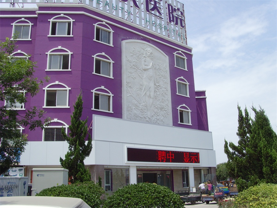 大型歐式風格女人體裝飾砂巖雕塑(浮雕),高9米,寬6米。材質(zhì):人造砂巖。2014年5月,安裝于濱州黃河八路渤海五路交叉口麗人醫(yī)院。